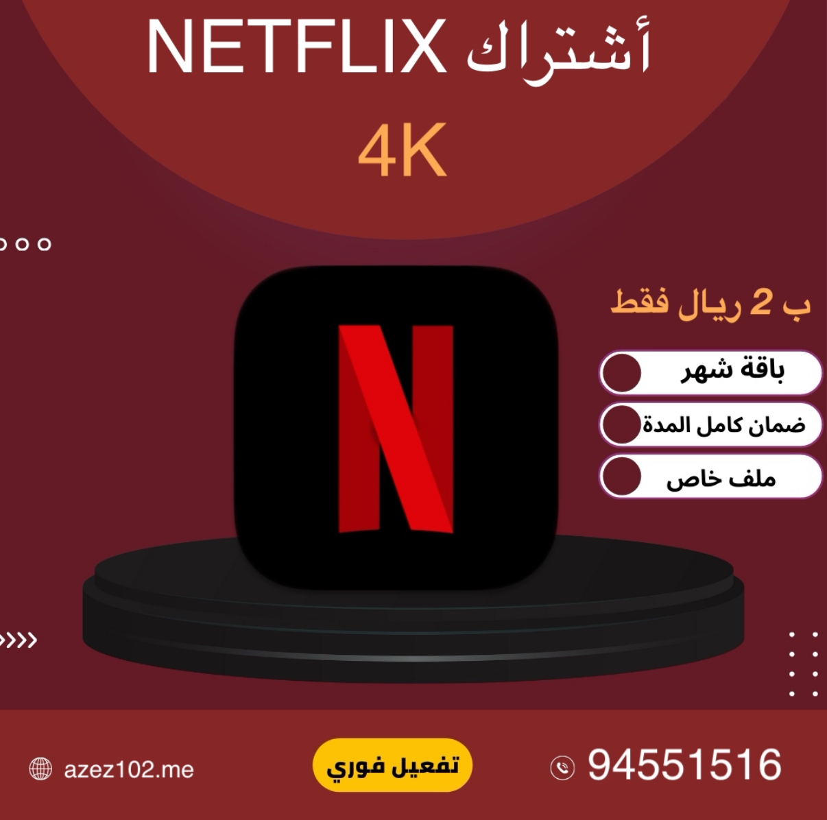 نتفلكس من الموزع الرسمي وضمان كامل المدة . ملف خاص برقم سري 4K